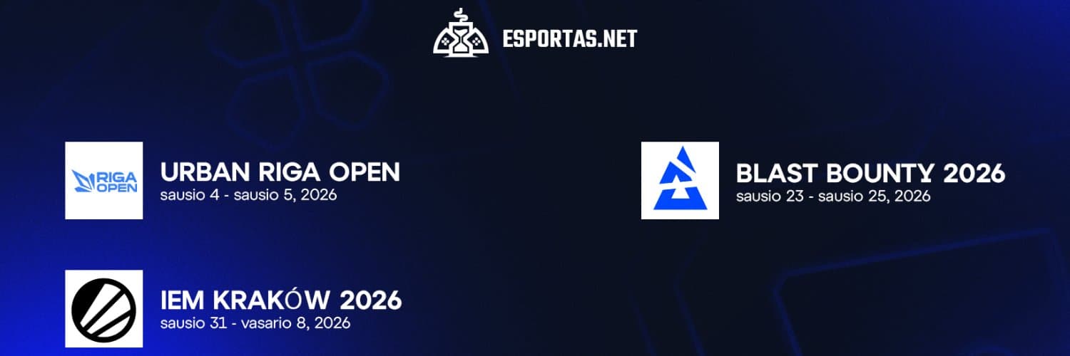 2026 metų CS2 sezonas prasideda itin intensyviai. Jau sausį profesionalią sceną užplūs aukščiausio lygio turnyrai, formuosiantys pirmąsias metų jėgų linijas. Kalendoriuje dominuoj…